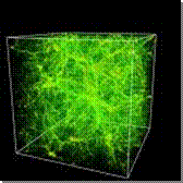 Analizzando i rilievi di COSMOS (una delle più importanti fonti di dati sull'universo) un team internazionale di scienziati ha assemblato una mappa tridimensionale che offre un primo sguardo alla distribuzione a ragnatela della materia oscura nell'universo. La mappa rivela una fitta rete di filamenti di materia oscura, che gradualmente collassano sotto la spinta della forza di gravità. I tre assi che inquadrano l'immagine corrispondono rispettivamente : l'asse delle x alla ascensione retta, delle y alla declinazione e delle z alla distanza dalla Terra. La distanza rappresenterà anche la coordinata temporale, dal momento che la luce che percepiamo oggi proveniente dalle galassie più lontane ha impiegato miliardi di anni per percorrere la distanza che ci separa da queste portandoci fotografie del passato. Bisogna notare come la distribuzione della materia oscura diventi più pronunciata man mano che ci si avvicina all'origine dell'universo.