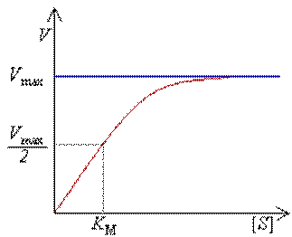 Riportando su un diagramma cartesiano l'andamento della velocità di reazione, dedotta secondo la cinetica di Michaelis-Menten, in funzione della concentrazione di substrato si ottiene graficamente un ramo di iperbole.