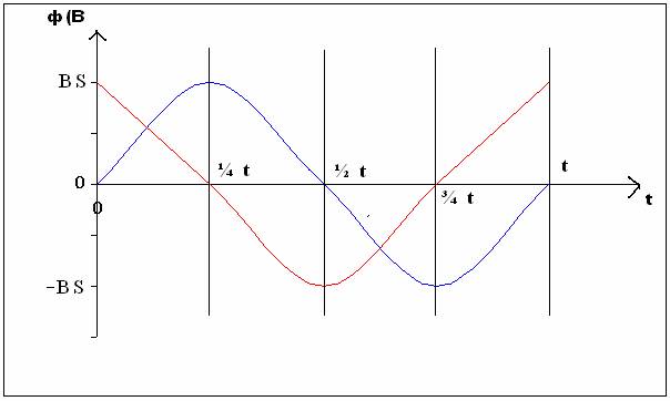 Vediamo dalle formule che la f.e.m. varia con una funzione sinusoidale del tempo. Poiché la corrente I è proporzionale alla f.e.m., anch'essa avrà un andamento sinusoidale, laddove il flusso ha invece un andamento cosinusoidale: