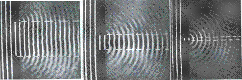 Se la fenditura è larga circa 1mm, allora i bordi dell'ombra appaiono nitidi. Ma se avviciniamo i due bordi della fenditura, cominciano ad apparire delle strisce chiare all'interno delle zone d'ombra ai bordi. Queste strisce sono così deboli che si possono vedere solo da vicino. Restringendo la fenditura fino a qualche centesimo di millimetro, esse si allargano e si espandono sempre di più nella zona d'ombra. Contemporaneamente anche i bordi dell'immagine vera e propria della fenditura si spostano, in modo che, al diminuire della fenditura, la sua immagine diventa sempre più larga. Siamo in presenza del fenomeno della diffrazione. Esso è una nuova prova della natura ondulatoria della luce.