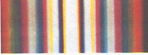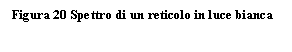 Vogliamo ora misurare la lunghezza d'onda della luce con un reticolo. Per far ciò sostituiamo nel dispositivo del precedente paragrafo la doppia fenditura con un reticolo e togliamo il filtro rosso. Sullo schermo compare uno spettro di diffrazione simmetrico. Al centro troviamo il massimo di diffrazione di ordine zero. A sinistra e a destra i massimi del primo ordine. Poi i massimi del secondo ordine ecc. Il massimo di diffrazione di ordine zero è bianco, perché qui tutti i colori spettrali si sovrappongono. I massimi di diffrazione di ordine superiore sono rossi verso l'esterno e violetti verso l'interno. Confrontando questa disposizione cromatica con la nostra formula, vediamo che i vari colori spettrali sono disposti a seconda delle varie lunghezze d'onda, perciò luce di color rosso ha la lunghezza d'onda maggiore, quella violetta la lunghezza d'onda minore.