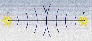 Due fenomeni F1 ed F2 che avvengono nei punti P1 e P2 sono simultanei se la luce che essi emettono giunge nello stesso istante in un punto M equidistante da P1 e P2.