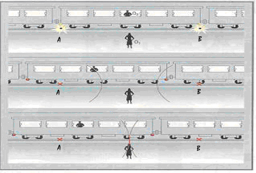 Tuttavia il giudizio di simultaneità è relativo: due eventi che risultano simultanei in un dato sistema di riferimento non lo sono in un altro che si muova rispetto al primo.