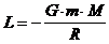 Nel caso dell'energia potenziale gravitazionale tale punto zero coincide con una distanza infinita. Quindi occorre calcolare il lavoro di una forza esercitata da un corpo di massa M, su di un corpo di massa m, che si sposta in linea retta (R=R1) ad una distanza infinita.