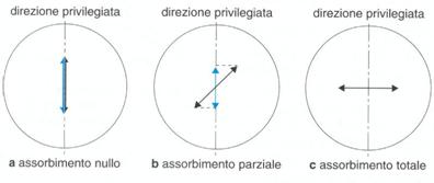 - tutte le radiazioni che vibrano in un piano perpendicolare alla direzione (o asse) privilegiata della lamina vengono assorbite completamente (fig. 21c).
