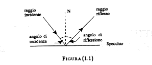 Il fenomeno descritto è la riflessione della luce ed è facilmente osservabile munendosi semplicemente di una lampadina e di uno specchio. Il raggio che parte dalla sorgente luminosa viene detto raggio incidente. Quello che esce dalla superficie riflettente si chiama raggio riflesso. L'angolo che forma il raggio riflesso con la normale alla superficie è l' angolo di riflessione.