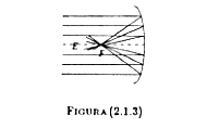 Consideriamo ora un fascio di raggi tutti paralleli all'asse principale. è facile osservare, mediante la costruzione geometrica vista, ed anche sperimentalmente, che essi sono riflessi in modo da intersecare l'asse principale nello stesso punto F che prende il nome di Fuoco.