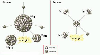 L'Energia nucleare è quella che si produce nella fissione dove un nucleo pesante si scinde in due nuclei leggeri o nella fusione di nuclei atomici quando si fondono due nuclei leggeri formando un nucleo pesante