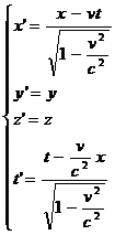 Per passare da un sistema di riferimento O,x,y,z ad un altro O',x',y',z' in moto rettilineo uniforme rispetto al precedente secondo l'asse x con velocità v, si usano le trasformazioni di Galileo, con l'ipotesi che il tempo sia lo stesso per entrambi gli osservatori: