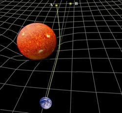 Anche la luce risente della curvatura dello spazio-tempo in vicinanza di una grande massa come il Sole: durante le eclissi riusciamo a vedere la luce di stelle che stanno dietro al Sole poiché la loro luce viene deviata dalla massa del Sole.