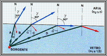 due mezzi e l'angolo di rifrazione assumerà il valore di 90°. L'angolo di