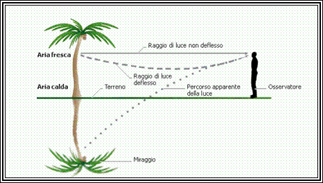 Miraggio. Generalmente gli strati dell'aria atmosferica più vicini alla Terra