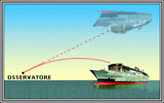 intercetta il raggio, vede la nave in alto, talvolta ingrandita o distorta,