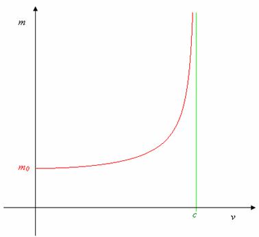 La massa, dunque, cresce con la velocità e in fig.1 è rappresentato il grafico della massa in funzione della velocità