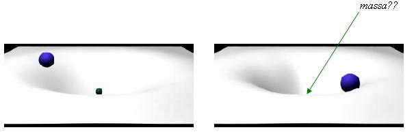 Nella logica relativistica, non è più necessario ricorrere alla forza gravitazionale per spiegare l'attrazione tra corpi. La presenza di un oggetto dotato di massa, infatti, modifica le proprietà geometriche dello spazio-tempo, incurvandolo (►fig.2a). Viceversa, una curvatura dello spazio-tempo rivela la presenza di una massa ( fig.2b). Tale curvatura influisce sul moto dei corpi circostanti, facendoli muovere lungo la traiettoria più breve possibile, detta curva geodetica o solo geodetica.