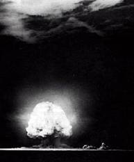 Alle 5.30 del 16 luglio 1945 ad Alamogordo, nel Nuovo Messico, durante un test chiamato in codice Trinity per verificare l'effettivo potere della bomba nel suo stato finale, venne fatta esplodere una bomba che ebbe effetti veramente terrificanti : la sua potenza esplosiva era pari a 20.000 tonnellate di TNT. Furono poi preparate altre 2 bombe a fissione. Una era una bomba all'uranio, chiamata ' Little Boy', e fu sganciata dal B12 'Enola Gay', pilotato dal comandante Paul Tibbets, su Hiroshima il 6 agosto 1945 ; l'innesco della bomba fu dovuto ad un'onda radar. Alcuni giorni dopo, fu sganciata su Nagasaki la seconda bomba, una bomba al plutonio chiamata 'Fat Man'.