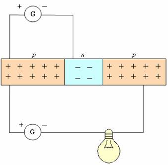 Un transistor è costituito da due giunzioni a semiconduttore accostate tra loro e collegate a due generatori come in ►fig.3.