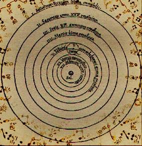 esprime attraverso l'introduzione della teoria eliocentrica di Copernico. Egli pone non più la Terra, ma il Sole al