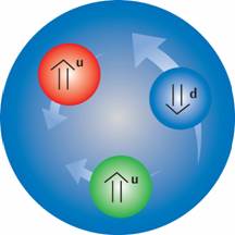 Figura - Protone formato da due quark up e un quark down.