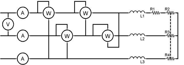 Cenni teorici: Questo metodo, utilizzato per primo dall'ing. Barbagelata consente la misura della potenza di un sistema trifase simmetrico e squilibrato a 3 fili. Lo schema di principio fa' uso di 4 wattmetri, ma è possibile ridurre tale numero a 2 (secondo schema) mediante l'utilizzo di un doppio deviatore. La scelta del secondo metodo va però fatta con cautela visto che le due coppie di letture vengono eseguite in istanti di tempo leggermente diversi, e se durante questo venissero a variare valori quali le tensioni di linea, o le correnti, la misura sarebbe inevitabilmente errata.