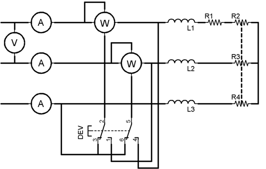 Scopo: utilizzo dell'inserzione Barbagelata per la misura di potenza attiva e reattiva su linea trifase simmetrica con carico squilibrato (il caso più comune nella pratica) senza neutro