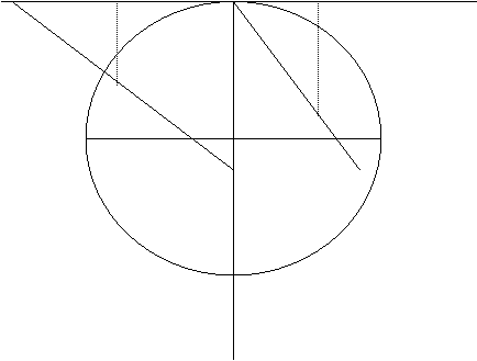 Il cerchio rappresentato in figura B ha, nella realtà, un raggio di 5 cm. Noi teoricamente regoliamo il fascio di luce incidente, in modo che passi per O e che CO misuri 4 cm. Per la legge di Snell, conoscendo l'indice di rifrazione dell'acqua (1.333), possiamo calcolare OD: