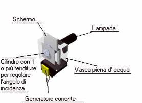 lampada collegata a un generatore di corrente, un disco con una fenditura per