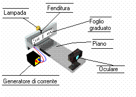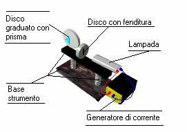 Una volta accesa la lampada, si osserva trami te l'oculare posto all'estremità di uno dei due cannocchiali i vari colori che si ottengono scomponendo la luce bianca tramite il prisma. Si effettua la stessa procedura utilizzando però la luce solare e si cerca di notare le differenze esistenti rispetto alla luce elettrica.
