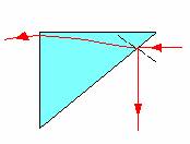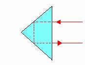 I: il prisma è a riflessione totale. Poiché gli angoli di incidenza nei due punti in cui il raggio incide sono maggiori dell'angolo limite, esso subisce una doppia riflessione totale.