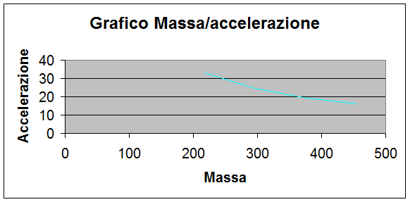 Dai dati qui sopra riportati abbiamo visto che al variare della massa varia anche l'accelerazione e che le due grandezze dipendono in modo indiretto perché all'aumentare di una diminuisce l'altra.