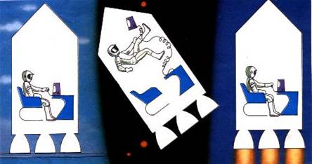 Fig. 15 Principio di equivalenza tra una navicella ferma in uno spazio