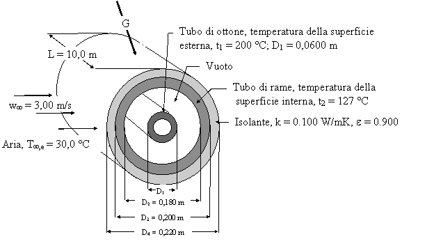 - emittenza della superficie del tubo, da considerare grigia: 0,870.