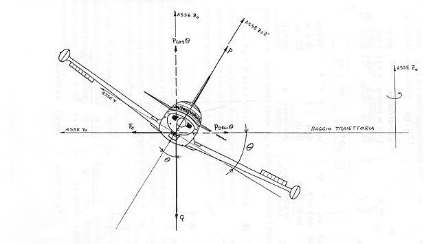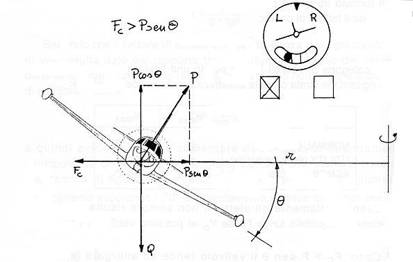 (SCIVOLATA) diminuendo sempre di più il raggio della traiettoria. Per ripristinare l'equilibrio il pilota dovrà ruotare il timone verso l'esterno della virata in modo tale che la devianza sommata alla forza centrifuga equilibri a componente P sen δ.