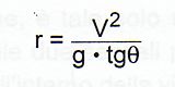 è possibile ricavare il raggio della virata corretta dividendo membro a membro la seconda e la terza equazione di equilibrio: