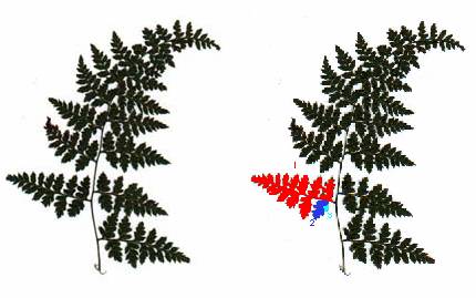In figura, viene considerata una porzione sempre più piccola della felce (in particolare sono evidenziati con colori diversi i primi tre passaggi), la quale rispetta sempre la proprietà sopra citata.
