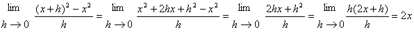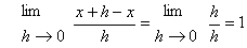 Determiniamo adesso la derivata della funzione f(x)=x, nel punto x.