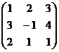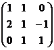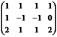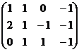 ((1,2,0,-1),(0,1,0,1)). Un vettore di
