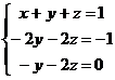 Sostituendo nella seconda equazione il valore di z calcolato nella terza equazione si ottiene il valore di y, infine sostituendo nella prima equazione sia il valore di x che quello di z si ottiene la soluzione finale: