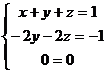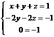 Le prime due equazioni sono le stesse dell'esempio precedente, la terza equazione differisce, invece, da quella relativa all'esempio precedente per il solo termine noto. Ripetendo gli stessi passaggi eseguiti in precedenza si ha: