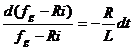 Sappiamo dalla prima legge di Ohm che la differenza di potenziale relativa ad un circuito è pari al prodotto tra la resistenza R esistente nel circuito e l'intensità i di corrente che percorre il circuito; nel nostro caso, la differenza di potenziale relativa al circuito RL è data dalla somma algebrica tra la forza elettromotrice costante erogata dal generatore e la forza elettromotrice autoindotta per effetto della presenza dell'induttore L. Perciò si può costruire la seguente equazione differenziale: