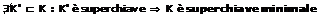 Consideriamo ancora K, ripetendo, di fatto il ragionamento precedente e supponiamo che K sia superchiave. Se non esiste un sottoinsieme di attributi incluso in K, tale da non costituire una superchiave, allora K è detto superchiave minimale.
