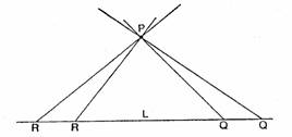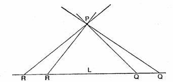 Questo pensiero fu seguito da riflessioni sul postulato delle parallele che erano simili a quelle di Lobacevskij e di Bolyai ma che in questo caso condussero a una conclusione diversa. Quando R si muove verso sinistra lungo L (fig. 5) e Q si muove verso destra, i due punti devono in definitiva incontrarsi poiché Riemann supponeva che la linea L sia finita. La linea PR ruoterà dunque attorno a P fino a incontrare la linea PQ,, senza però mai perdere il contatto con L. Ossia per P non dovrebbe passare alcuna linea parallela a L. La figura 5 non ci dice in che modo questa rotazione completa di PR attorno a P sia possibile con la nostra concezione usuale della linea retta, ma il disegno non vuol far altro che suggerire il pensiero di Riemann. Queste riflessioni suggerirono a Riemann l'opportunità di adottare, assieme alla finitezza della linea retta, un postulato che negasse l'esistenza di linee parallele.