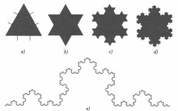 si prenda un triangolo equilatero (a) e si divida ciascun lato in tre parti congruenti;
