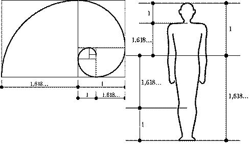 diversi rapporti aurei (1:1,618) . Oltre all'altezza da terra dell'ombelico