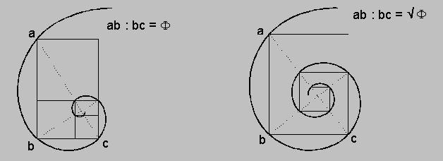 Se adesso in ogni quadrato si traccia in quarto di cerchio, si ottiene una spirale (detta logaritmica). Questa spirale è fatta di parti di circonferenza e quindi è un approssimazione di una vera spirale. Si può provare che tale spirale forma una linea dal centro che si incrementa di un fattore pari alla sezione aurea in ogni quadrato. Così i punti sulla spirale sono 1,618 volte distanti dal centro dopo un quarto di giro