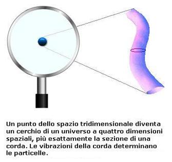 Secondo questa teoria, se potessimo esaminare le particelle fondamentali - come quark ed elettroni - con un 'ingrandimento' centomila miliardi di volte maggiore di quello che ci è permesso dalle tecnologie attuali scopriremmo che esse non sono palline ma minuscole linee o anelli sottilissimi.
