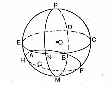 E' possibile ora porre la medesima domanda che abbiamo sollevato in relazione alla geometria di Lobacevskij e di Bolyai. La geometria di Riemann ha qualche significato oltre a quello di un esercizio intellettuale per i matematici? Anche qui la risposta è affermativa.Infatti è possibile applicare la geometria di Riemann al mondo fisico con la medesima interpretazione della linea retta e non scoprire mai differenze fra le asserzioni della geometria e la situazione fisica. L'argomentazione è anche in questo caso esattamente la stessa che nel caso della geometria di Lobacevskij e di Bolyai. Modificando, inoltre, la nozione della linea retta, risulta possibile trovare altre interpretazioni, intuitivamente soddisfacenti, della geometria di Riemann. Così come la geometria euclidea era stata rappresentata su una superficie cilindrica e la geometria di Lobacevskij e di Bolyai su una pseudosfera, così possiamo rappresentare la geometria di Riemann sulla sfera che ci è familiare. La curva che unisce due punti su una sfera col percorso più breve (ossia la curva che sarà l'immagine della linea retta) è l'arco del cerchio massimo che passa per i due punti. Per cerchio massimo intendiamo un cerchio il cui centro sia anche il centro della sfera. Così, dei due cerchi che passano per A e per B (fig. 8), il cerchio ABCDE è un cerchio massimo, mentre il cerchio ABFGH non lo è.