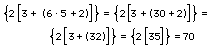 Per risolvere o semplificare un'espressione algebrica, per prima cosa si eseguono le moltiplicazioni, poi le divisioni, seguite dalle addizioni e dalle sottrazioni. Le parentesi vanno svolte iniziando dalle tonde, per seguire con le quadre e infine le graffe. Il tipo di parentesi corrisponde solitamente alla posizione che questa occupa: le parentesi più interne sono dunque le tonde, per seguire con le quadre e le graffe, come indica l'esempio qui sotto: