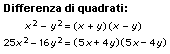 Alcuni metodi di scomposizione in fattori sono illustrati nei seguenti esempi: