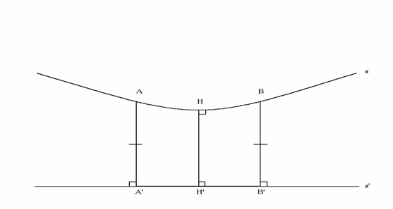 Questa figura suggerisce che il punto "nel mezzo" di s è il più vicino a s' e che s si allontana da s' simmetricamente da entrambi i lati di questo punto medio. Si dimostra che questo è proprio ciò che accade. Tuttavia si deve notare che il teorema precedente non esclude un'altra possibilità, cioè che non ci siano coppie di punti di s equidistanti da s'. Una figura per questo caso potrebbe essere la seguente: